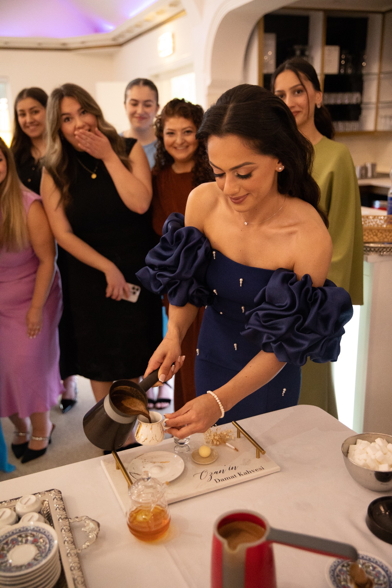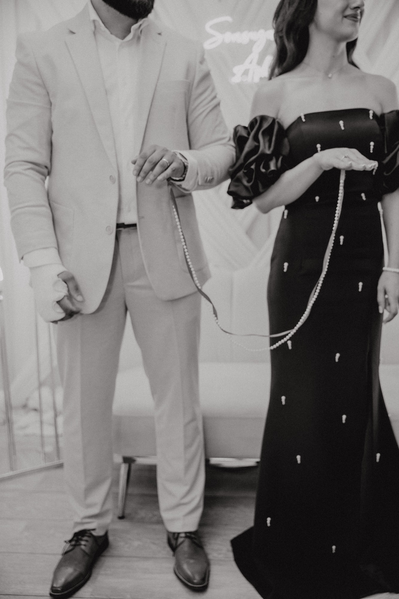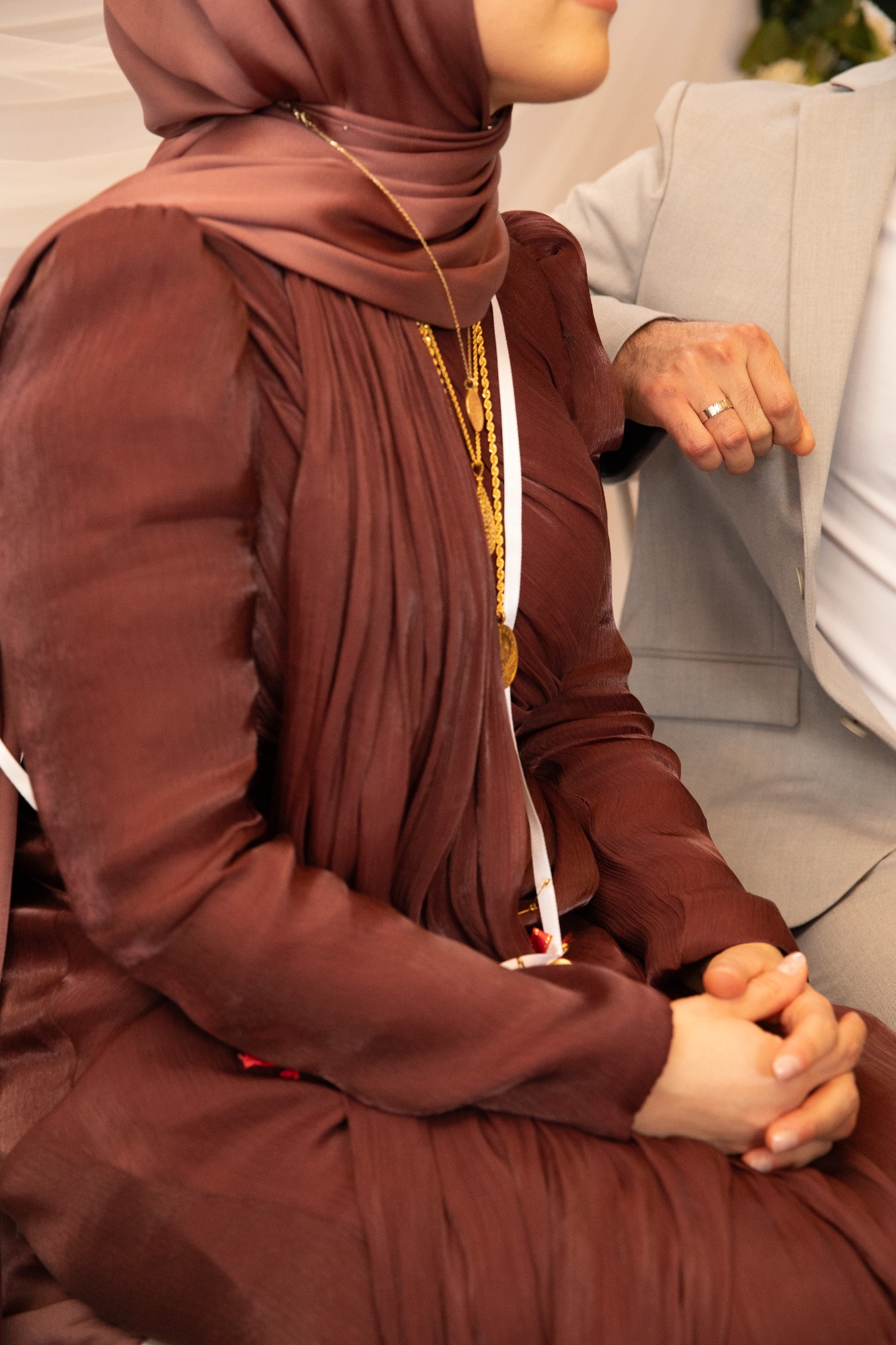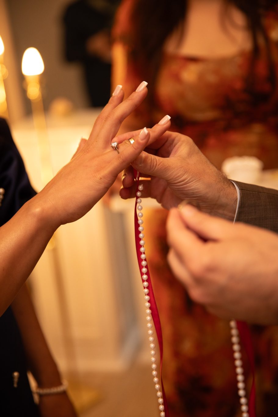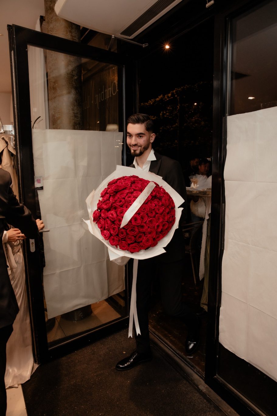 Tijdens de handvraag draait alles om traditie en samenzijn. Rode rozen vullen de kamer met liefde, terwijl de families samenkomen voor dit bijzondere moment. De tafel staat vol met cadeaus, lekkernijen en koffie, elk detail zorgvuldig gekozen. Zodra de families hun zegen geven, mag het lint tussen de ringen geknipt worden.