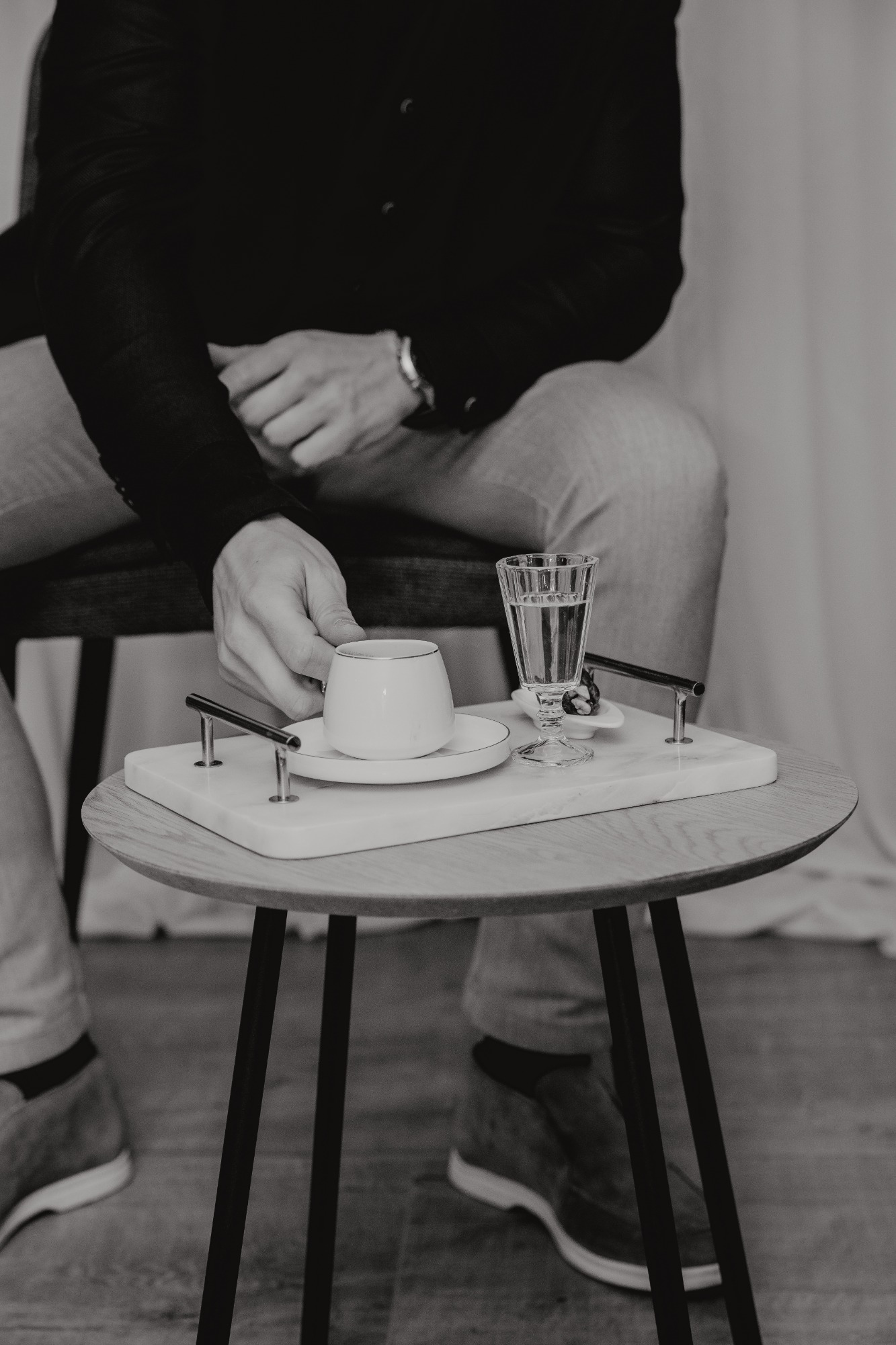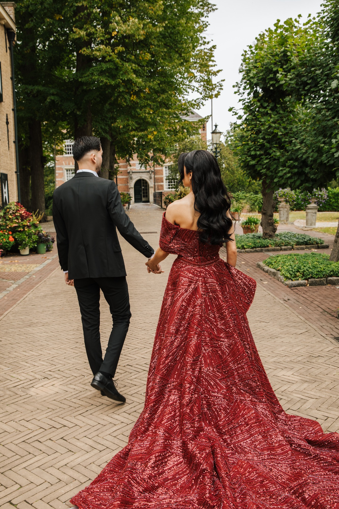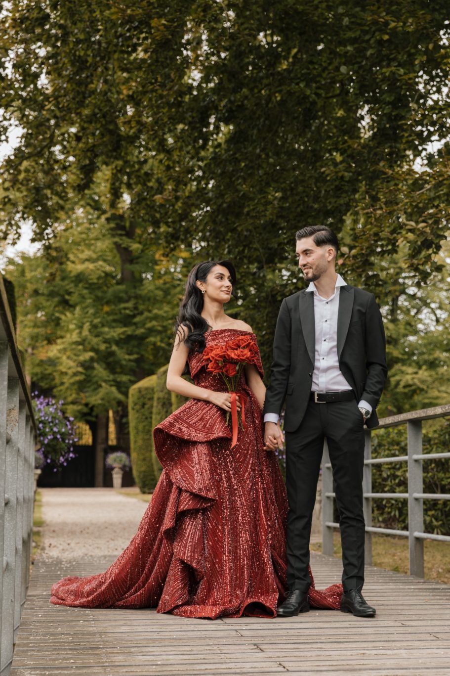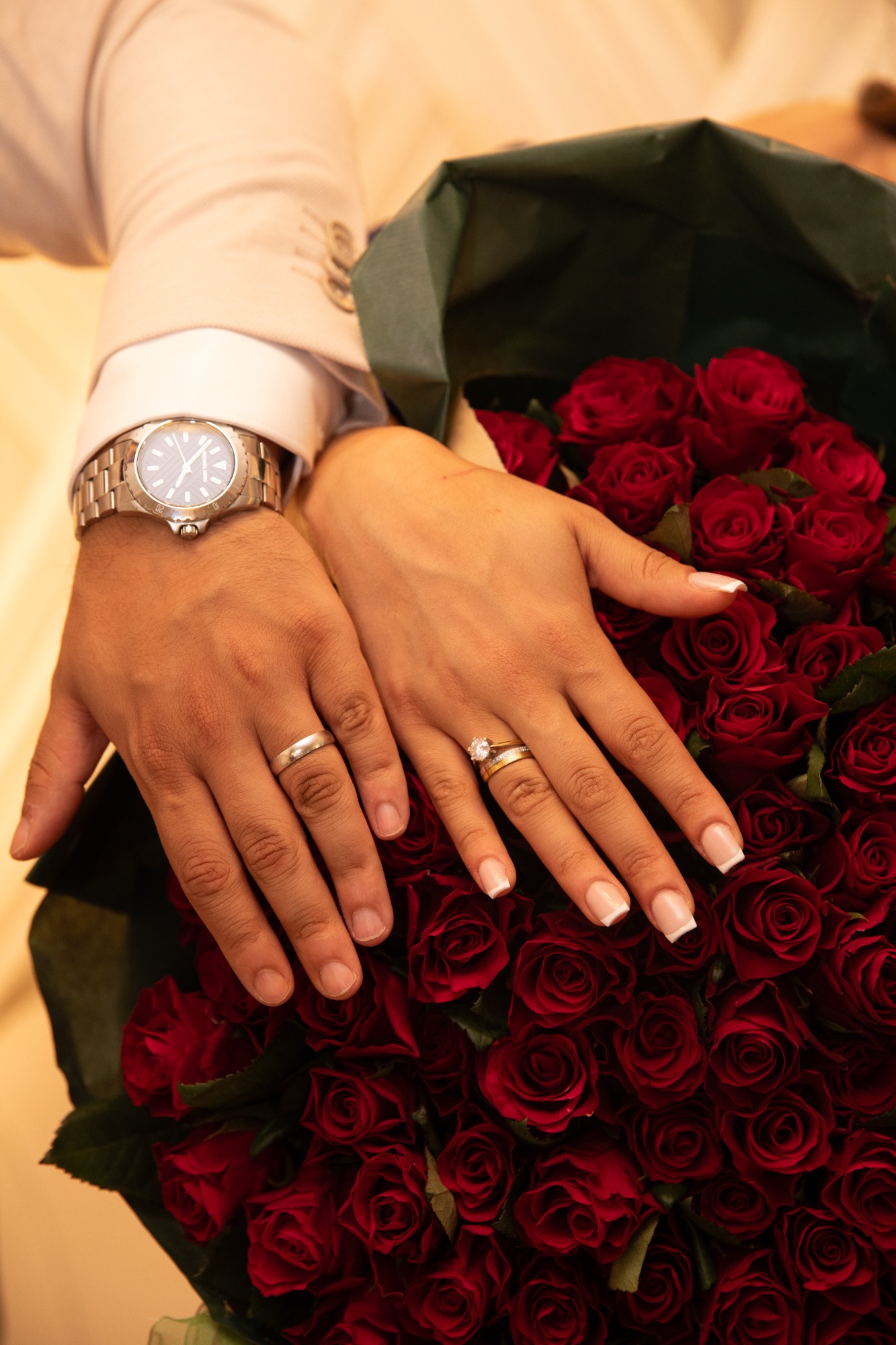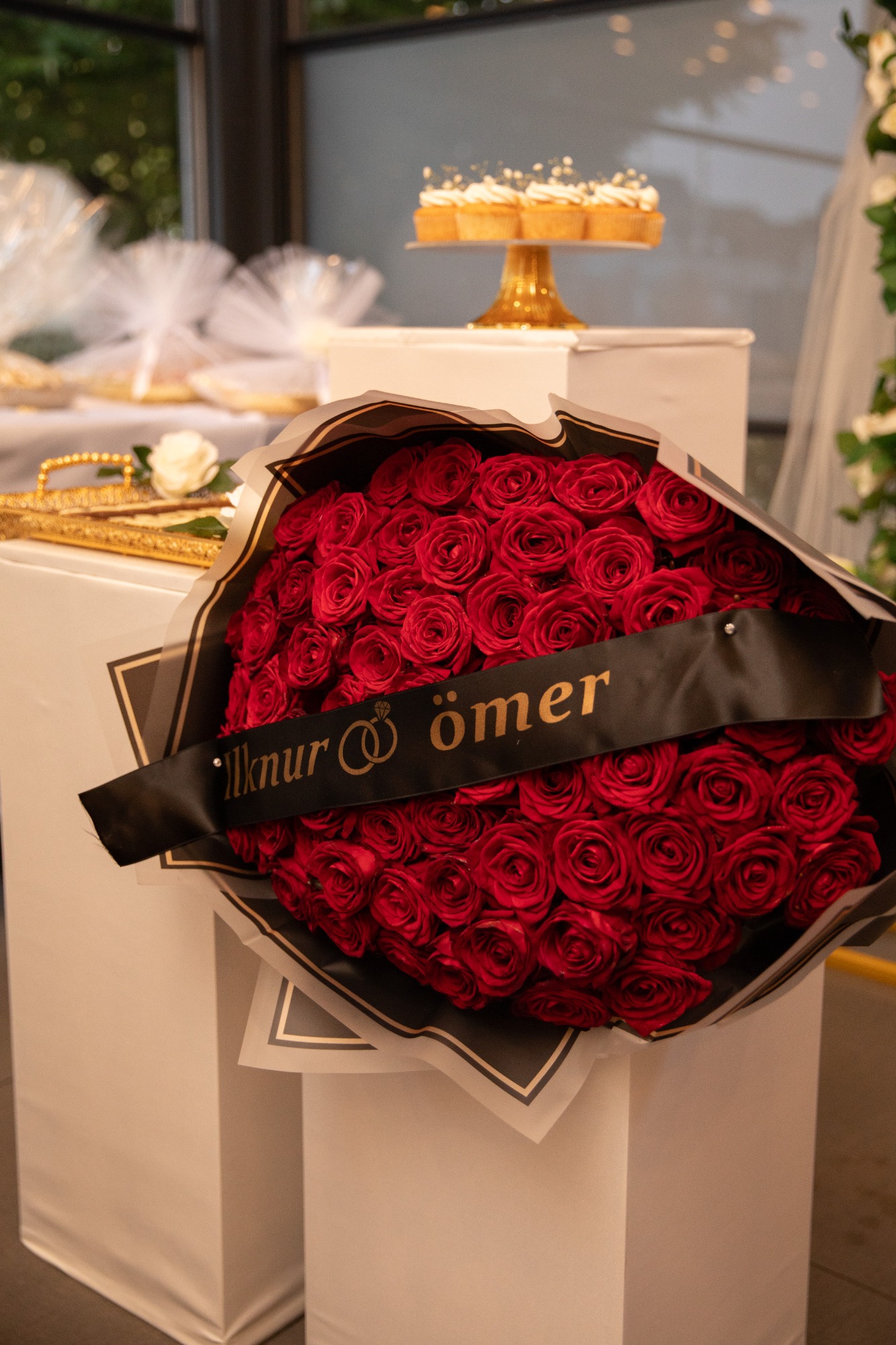 Tijdens de handvraag draait alles om traditie en samenzijn. Rode rozen vullen de kamer met liefde, terwijl de families samenkomen voor dit bijzondere moment. De tafel staat vol met cadeaus, lekkernijen en koffie, elk detail zorgvuldig gekozen. Zodra de families hun zegen geven, mag het lint tussen de ringen geknipt worden.