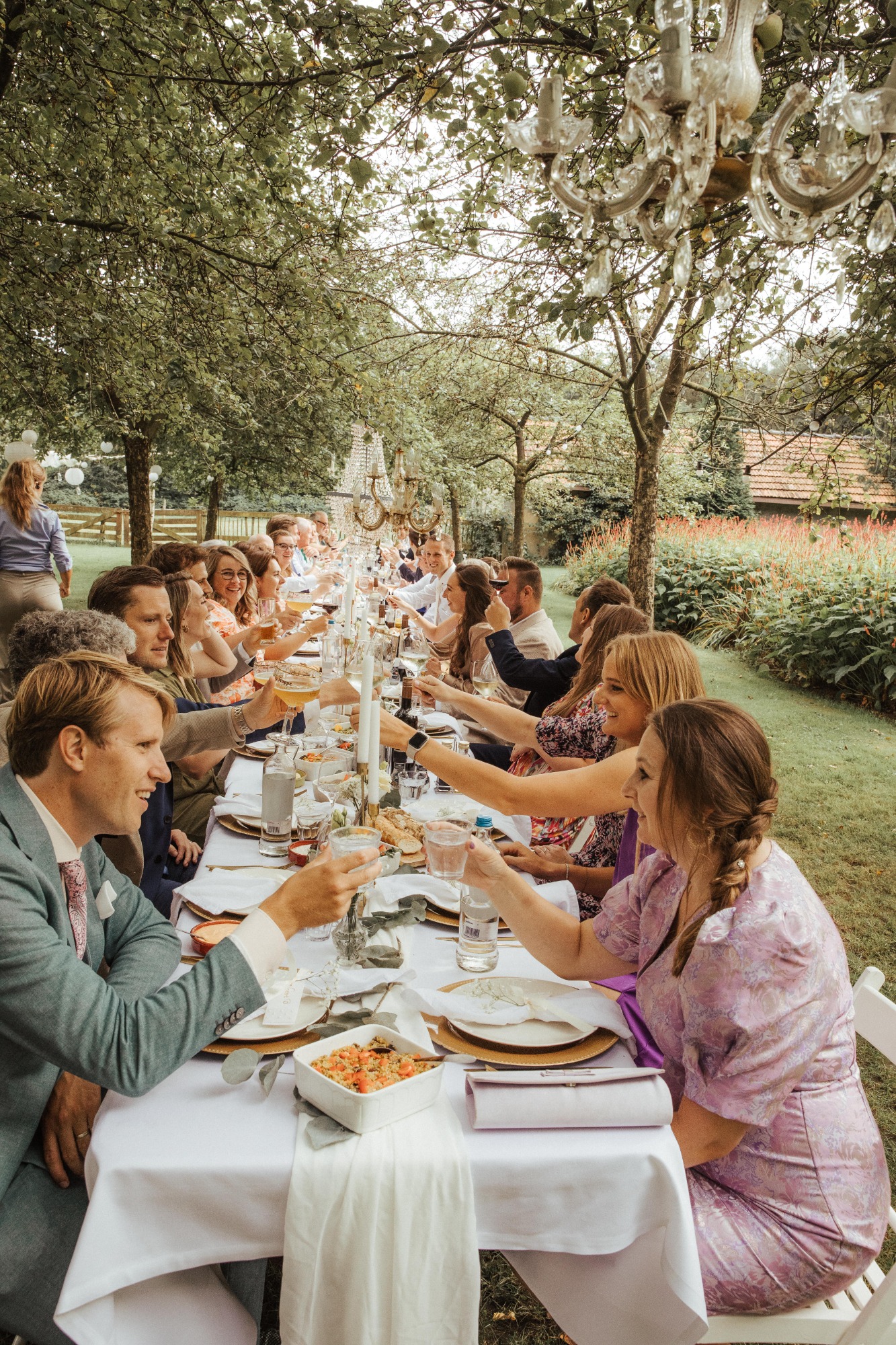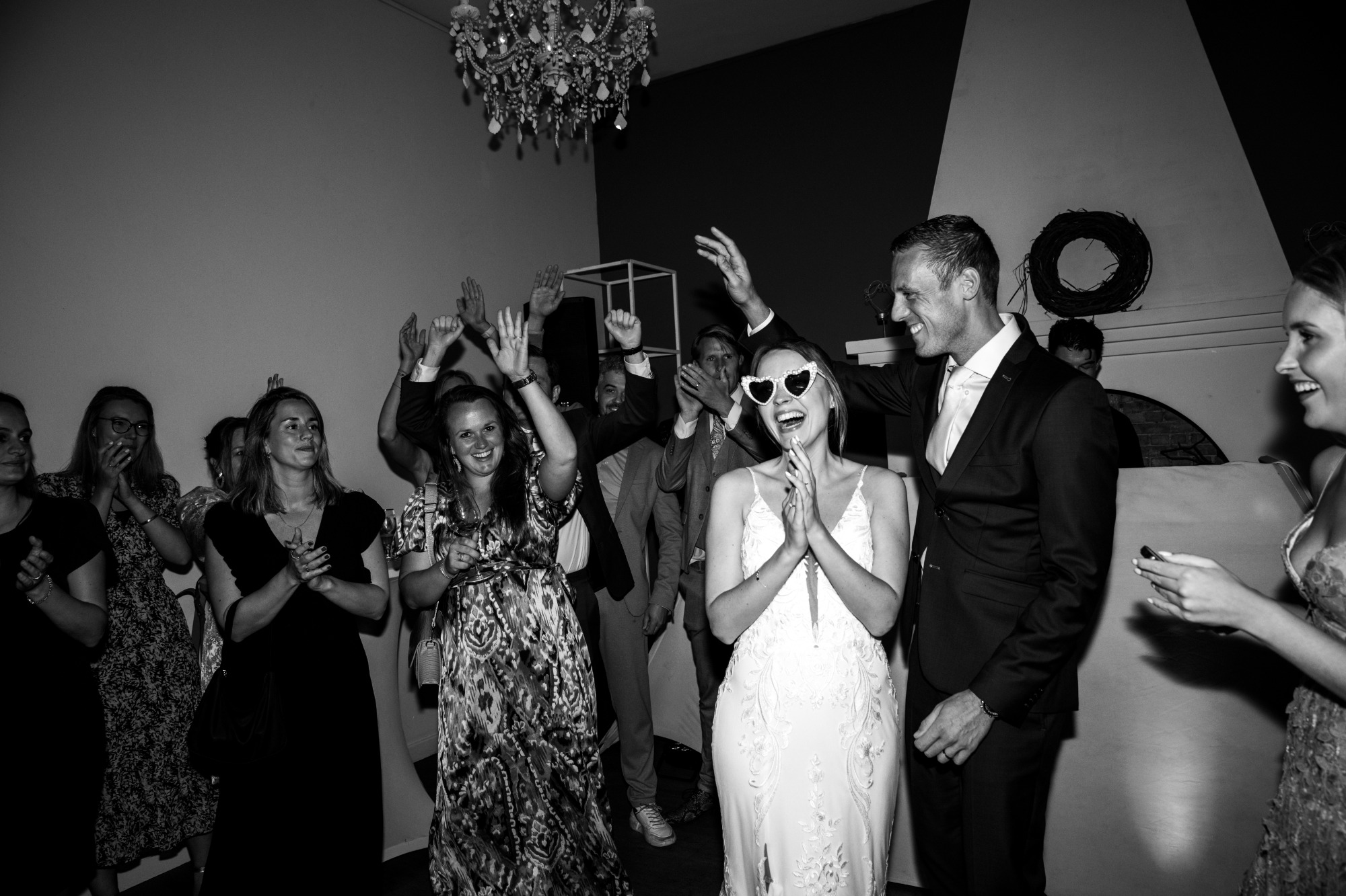 Wanneer de lichten dimmen en de schoenen uitgaan, begint een ander hoofdstuk van de dag. De spanning maakt plaats voor pure ontspanning, lachen, dansen, samen vieren.